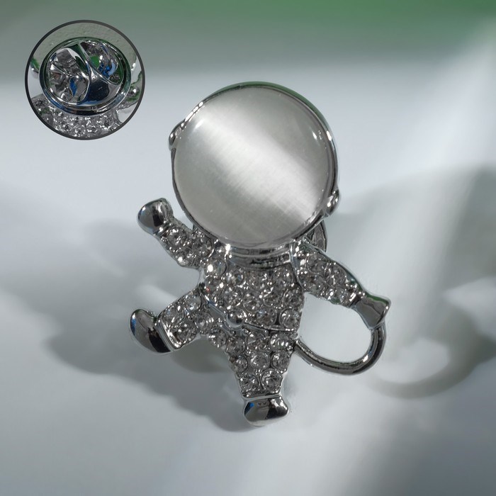 Значок "Космонавт" в прыжке, цвет белый в серебре